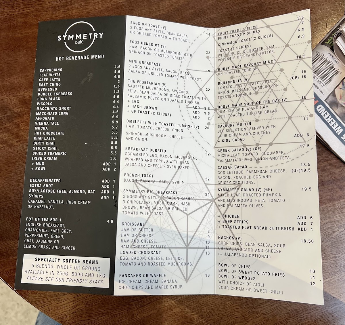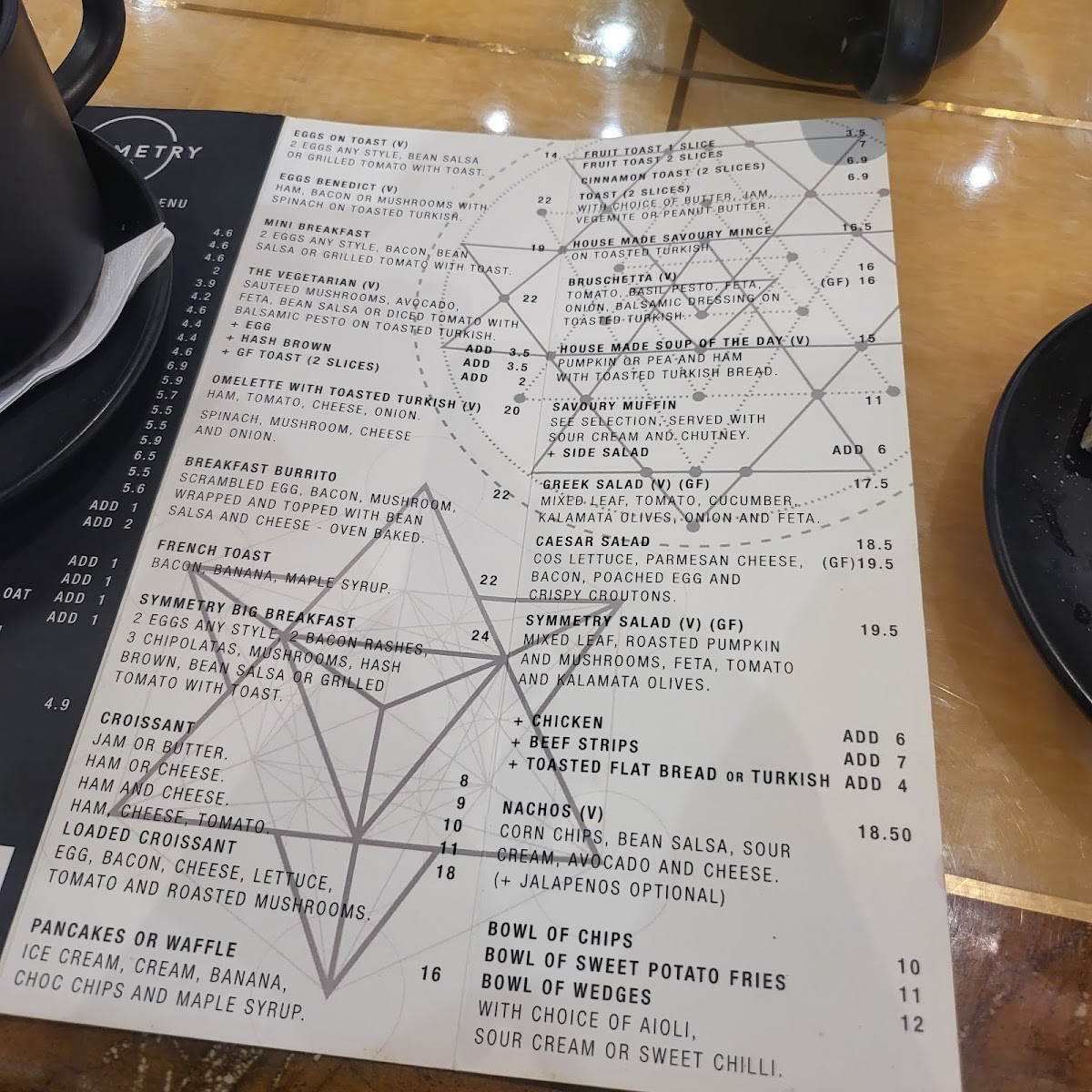 The menu at Symmetry Café offers a delightful variety of options catering to different tastes and preferences. For the little ones, the Cheese Toasties and Ham, Cheese, and Tomato Toasties on white bread are popular picks. For a refreshing treat, the Iced Long Black, Iced Coffee Without Cream, and Iced Latte are perfect on a warm day, while options like Iced Chocolate Without Cream and Coffee Frappé provide a sweet alternative. The café also features delicious Open Grill options, such as the Chicken, Cheese, and Onion on Turkish Bread, and the vegetarian-friendly Pumpkin, Feta, Olives, Tomato, and Pesto on Turkish Bread. There’s also a selection of Cookies like the Melting Moment Cookies and Byron Bay Cookies. For a heartier meal, the Smashed Avocado on Sourdough or the savory Chicken and Mushroom Crepes are ideal. Sides like Sautéed Mushrooms, Bacon, and Hash Browns pair well with the all-day menu items. Hot Drinks range from the classic Latte and Espresso to specialty options like White Chocolate Piccolo and Mocha. Guests can also enjoy a variety of Cakes, including Lamington, Apple Rhubarb, and the decadent Crème Brûlée. To cool off, the Mango Granita or a Four Berry Smoothie provides a delicious and refreshing option. For those with dietary restrictions, the café offers Gluten Free Cakes like Caramel Slice and Carrot Cake, ensuring there’s something for everyone to enjoy. Symmetry Café truly excels at offering diverse and comforting choices, making it an excellent stop for any time of day.